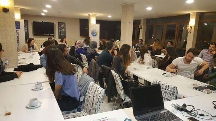 26.03.2017 tarihinde düzenlediğimiz bilgilendirme toplantısında Ulusal Ajans, Erasmus+ programı, AB fırsatları, derneğimizin faaliyet ve çalışmaları hakkında tanıtım sunumları gerçekleştirildi. 18-30 yaş arası 40 katılımcının iştirak ettiği toplantıda, Erasmus+ programının genel yapısı, faaliyet alanları, katılımcılar üzerinde beklediği etkiler ve programdan faydalanma koşulları etraflıca ele alındı. Derneğin aktif faaliyetleri ve çalışma metotları hakkında da bilgi verilen toplantı sürecinde özellikle genç bireylere odaklanan dernek faaliyetlerine katılım teşviklerinde bulunuldu. Erasmus+ programından faydalanan birey ve stk yetkililerininde katılım sağladığı toplantı sürecinde, ilgili konular üzerindeki deneyim ve yetkinliklerin katılımcı gruplar ile paylaşılması sağlandı. Toplantıdan kareler;